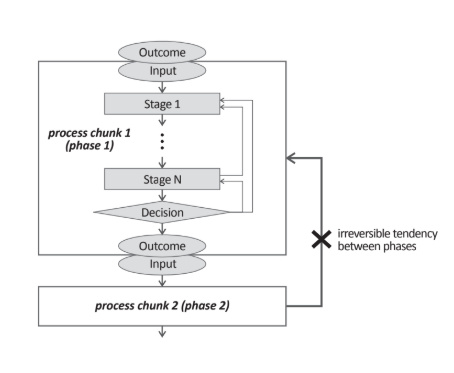從狀態轉換的角度來看, Reymen(2001) 將設計過程描述為通過在每個階段執行任務並評估設計活動將狀態從一種狀態轉移到另一種狀態的過程。這是台門車型,在設計活動發生在舞台的每一個階段,設計輸出的設計審查,從而作出決定之間是否進入下一個階段,重複當前階段或拒絕該項目的進行評估一致 ,大多數基於階段的模型都提出了這種觀點(Wynn&Clarkson,2005)。基於階段的模型由旨在執行任務的動作和旨在評估執行任務的結果的決策組成;其中完成構成進展到下一個階段 (j̈ansch&Birkhofer,2006;Roozenburg&交叉,1991)。除此之外,當從一個階段跳到另一個階段或在子過程之間鏈接時,伴隨輸入和輸出的信息流就會發生