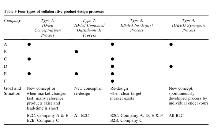 結果,我們發現了四種類型的典型協同產品設計流程及其特徵: